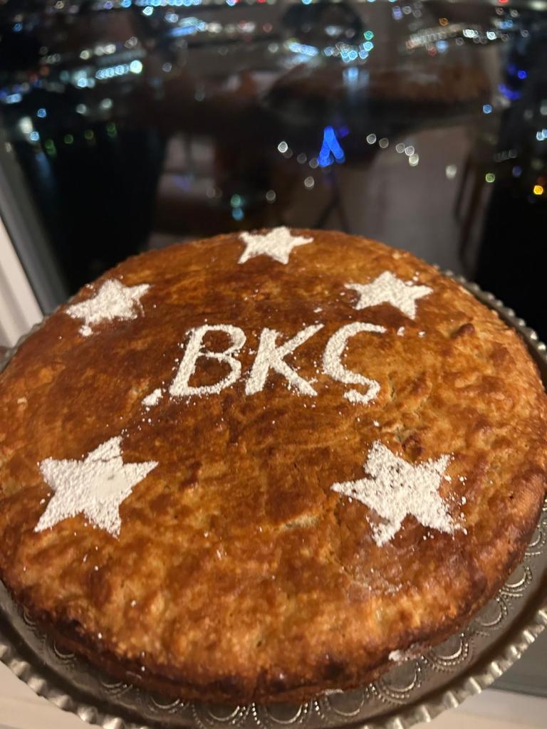 This is a home cake, not a showpiece: understated, fragrant, and cut at midnight to welcome the New Year and reveal the flouri – a coin auguring good luck for the coming year embedded in the dough to be discovered by one of the family members or guests in their slice.